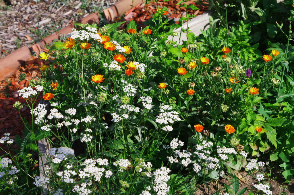 Невен за регенерация. Бял равнец за баланс. Тагетес за устойчивост.
